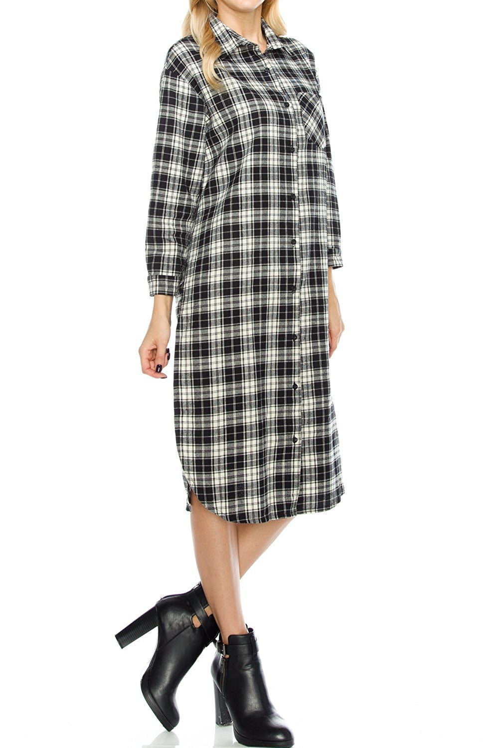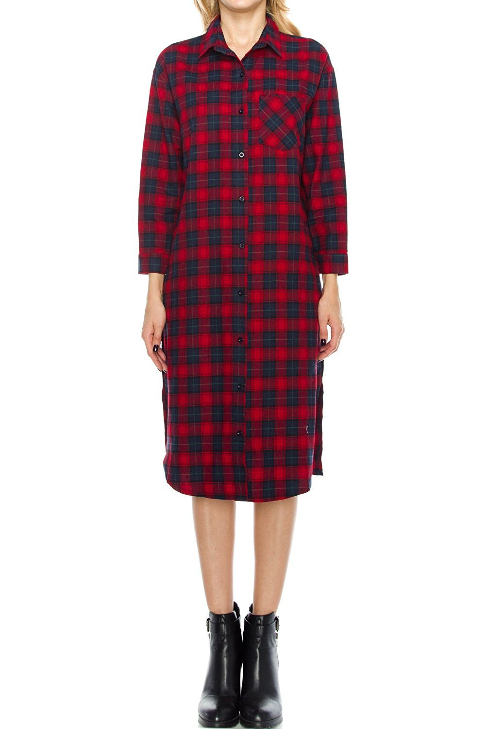 KLKD Women's Cotton Plaid Oversized Flannel Dress