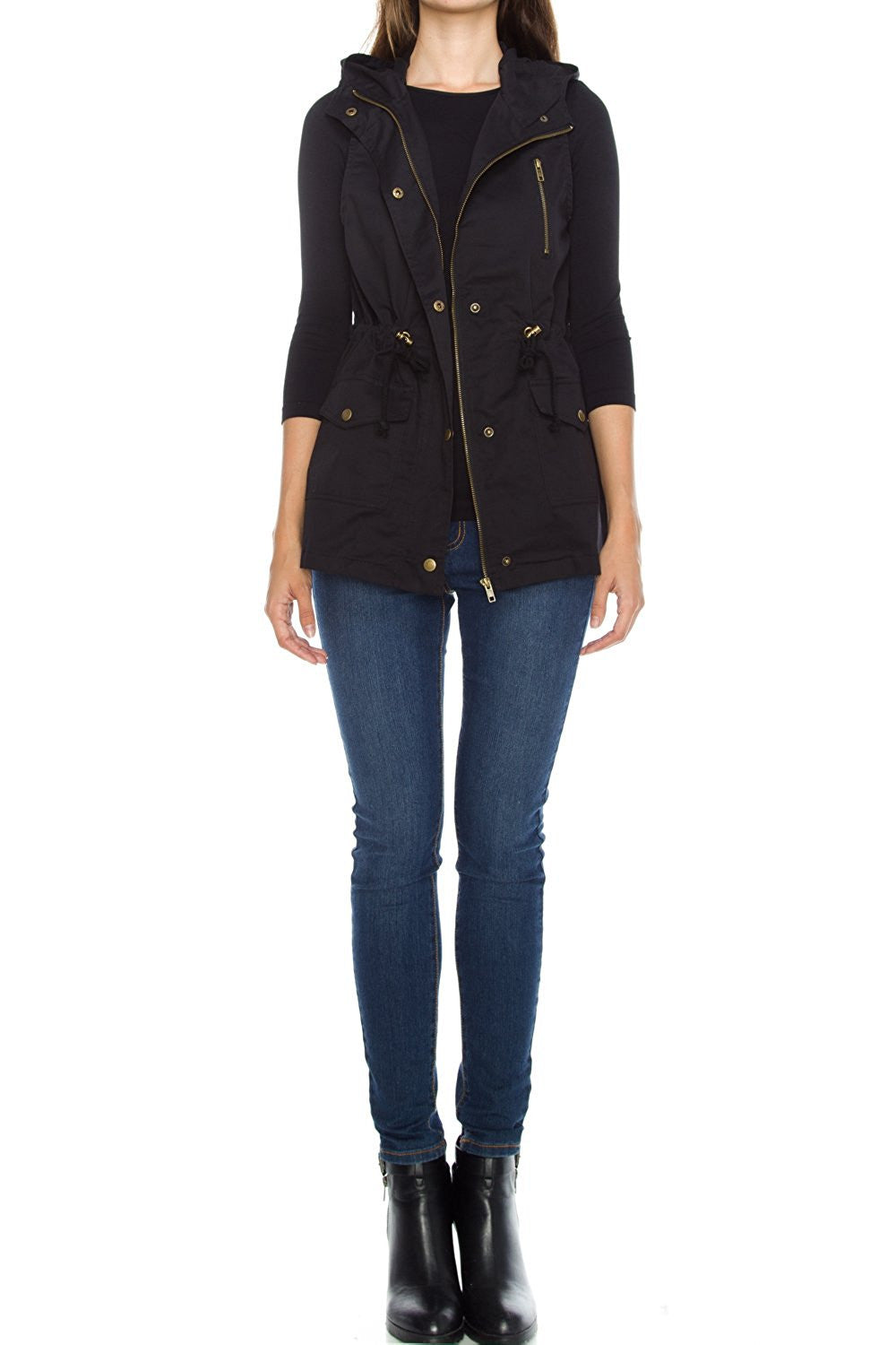 KLKD Women's Drawstring Hoodie Vest Jacket with Zipper and Button